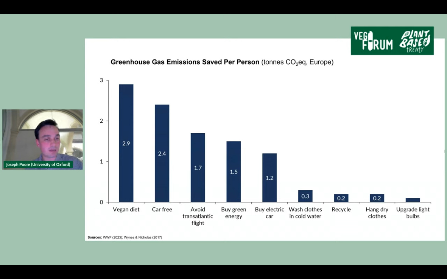 Earlier this week I watched a webinar from Vegoforum, a Swedish group advocating for veganism, at the invitation of the Plant-based Treaty people. Starting at the 9:06 mark, Joseph Poore presents findings from his new book.
