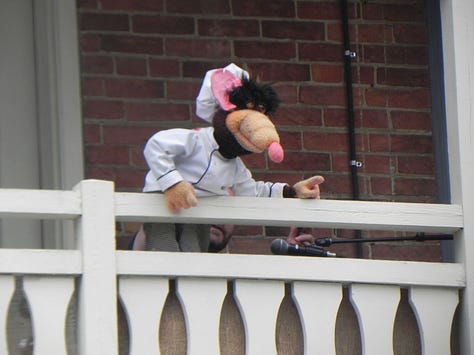 From the top left: A new take on Punch and Judy; a scene from Humpty Dumpty; scenes from the parade; an Almonte resident engaging passersby from his balcony.